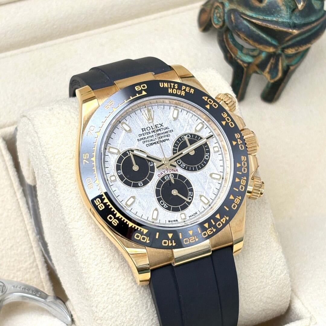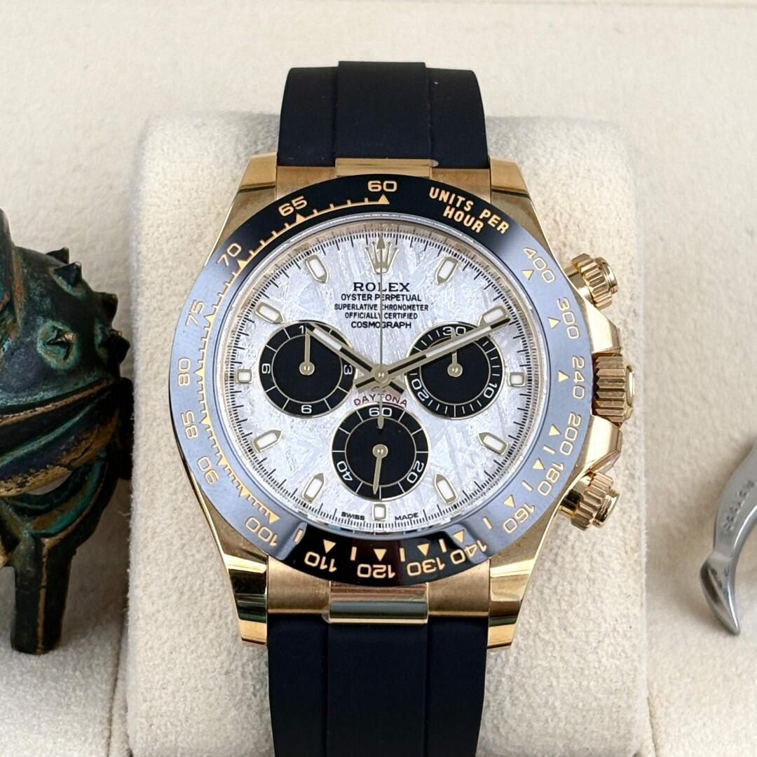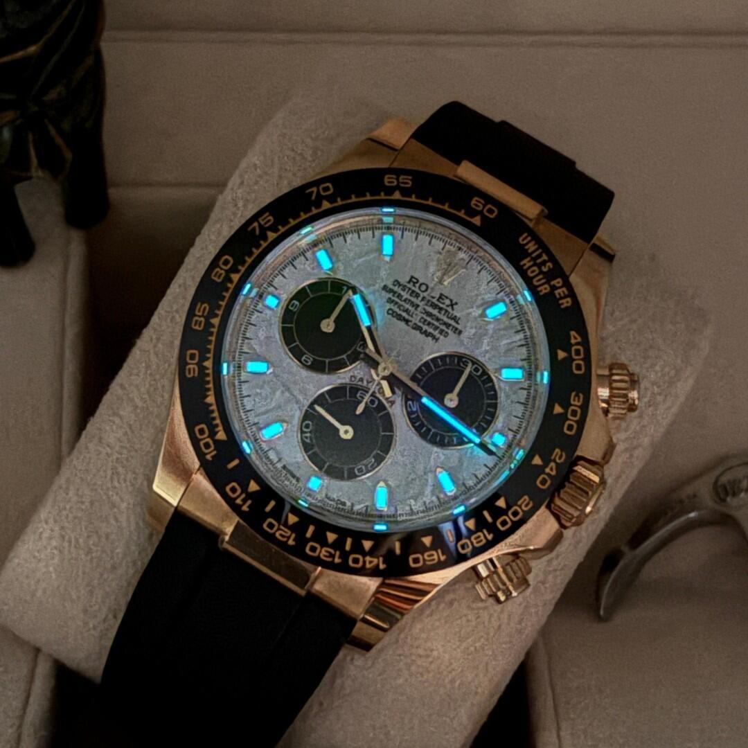 ロレックスデイトナ116515LNメテオライトは、18ctエバーローズゴールドのオイスターパーペチュアルコスモグラフデイトナは、メテオライト&ブラックダイアルとオイスターフレックスブレスレットを備え、ブラック セラクロムタキメーターベゼルが特徴的でロレックスのCTエバーローズゴールドは、独自の特許を取得し、ピンクゴールドの時計の美しさを長く維持するため、独自の18ctピンクゴールド合金を自社開発し、特許を取得した。
