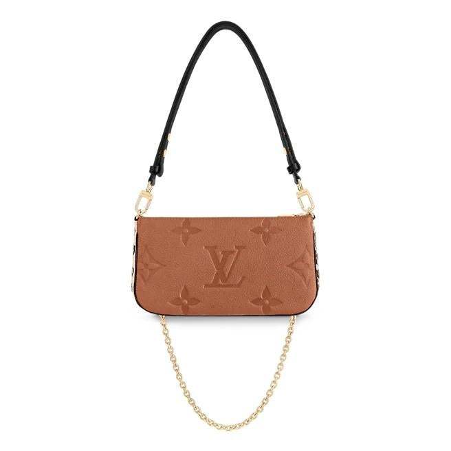 モノグラム?ジャイアント パターンのエンボス加工が特徴の、艶やかなモノグラム?アンプラント レザーで再解釈した「ミュルティ?ポシェット?アクセソワール」。2021秋の「ワイルド?アット?ハート」カプセル?コレクションに相応しく、両サイドにあしらったアニマル?プリントが洗練された雰囲気を演出します。取外し & 調節可能なストラップと取外し可能なポーチで、多用途かつエレガントにお楽しみいただけるアイテムです。